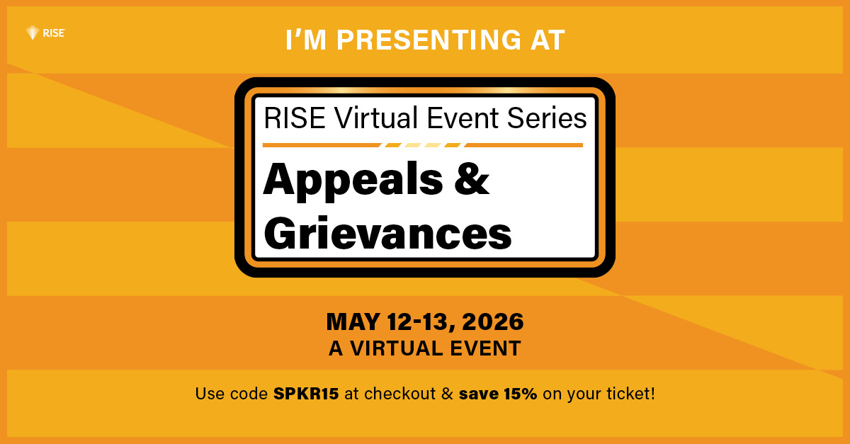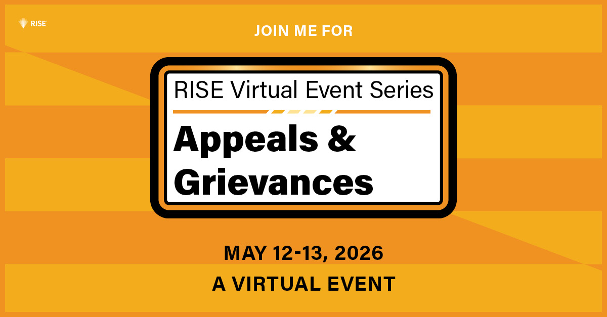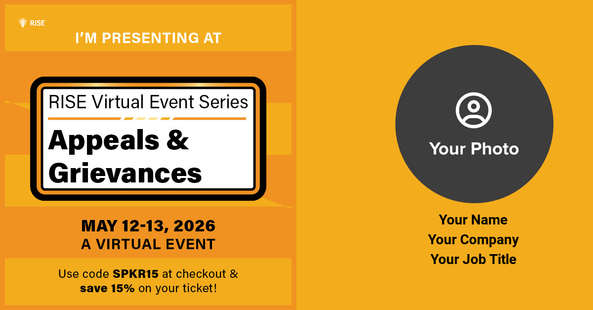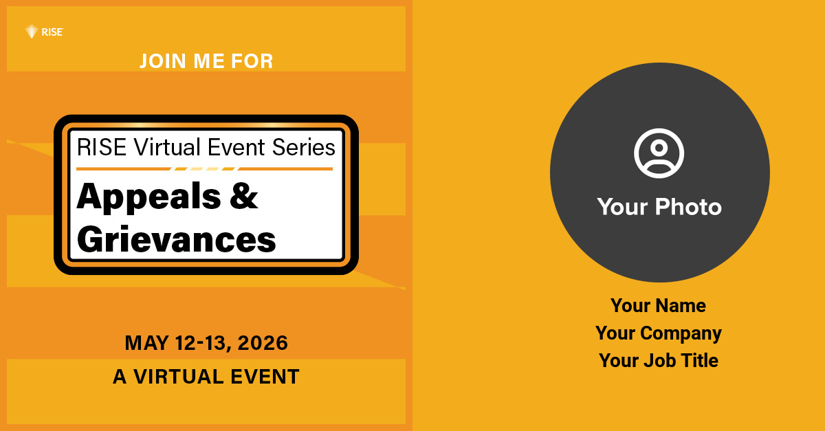 If you're confirmed to attend the RISE Virtual Event Series: Appeals & Grievances, you've made the right decision. Help us spread the word, inspire your peers, and build credibility by sharing your participation with your LinkedIn network.